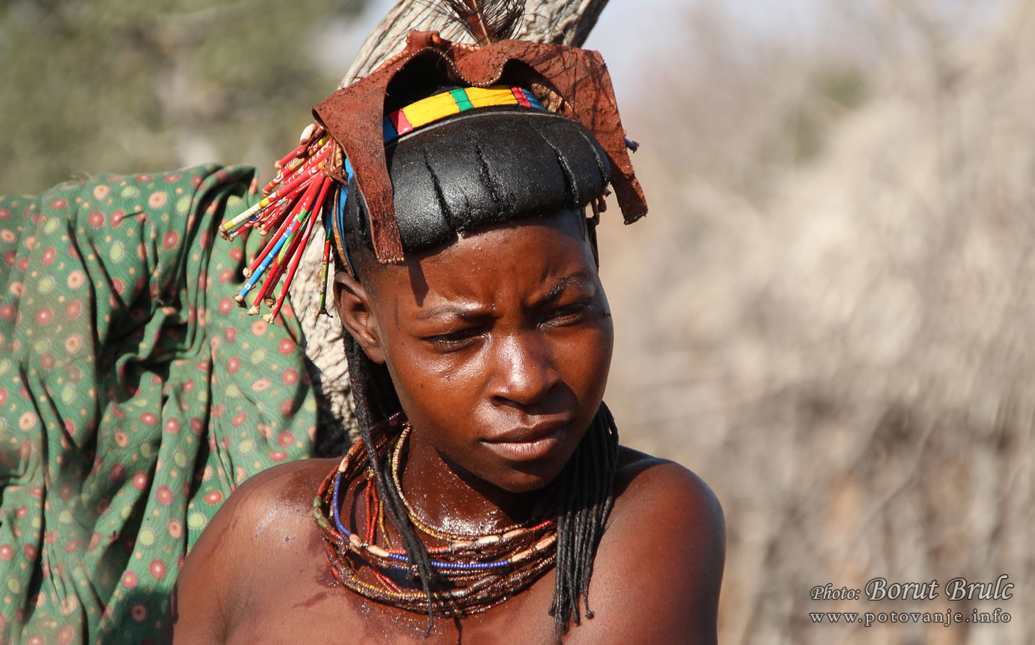 Himba: Himba ljudstvo, znano po svojih tradicionalnih rdečih telesnih barvah in edinstvenih frizurah živi v severni Namibiji.