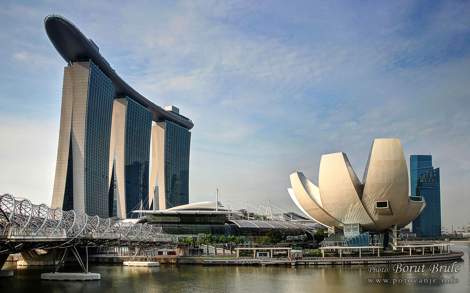 V mestu nam pade v oči visoka zgradba Marina Bay Sands, ki je mešanica hotela igralnice in trgovskega centra. Na vrhu te zgradbe je Sky park, kjer lahko opazujemo skoraj celotno mesto in tudi zaplavamo v najvišjem bazenu na svetu, na višini preko 200m.